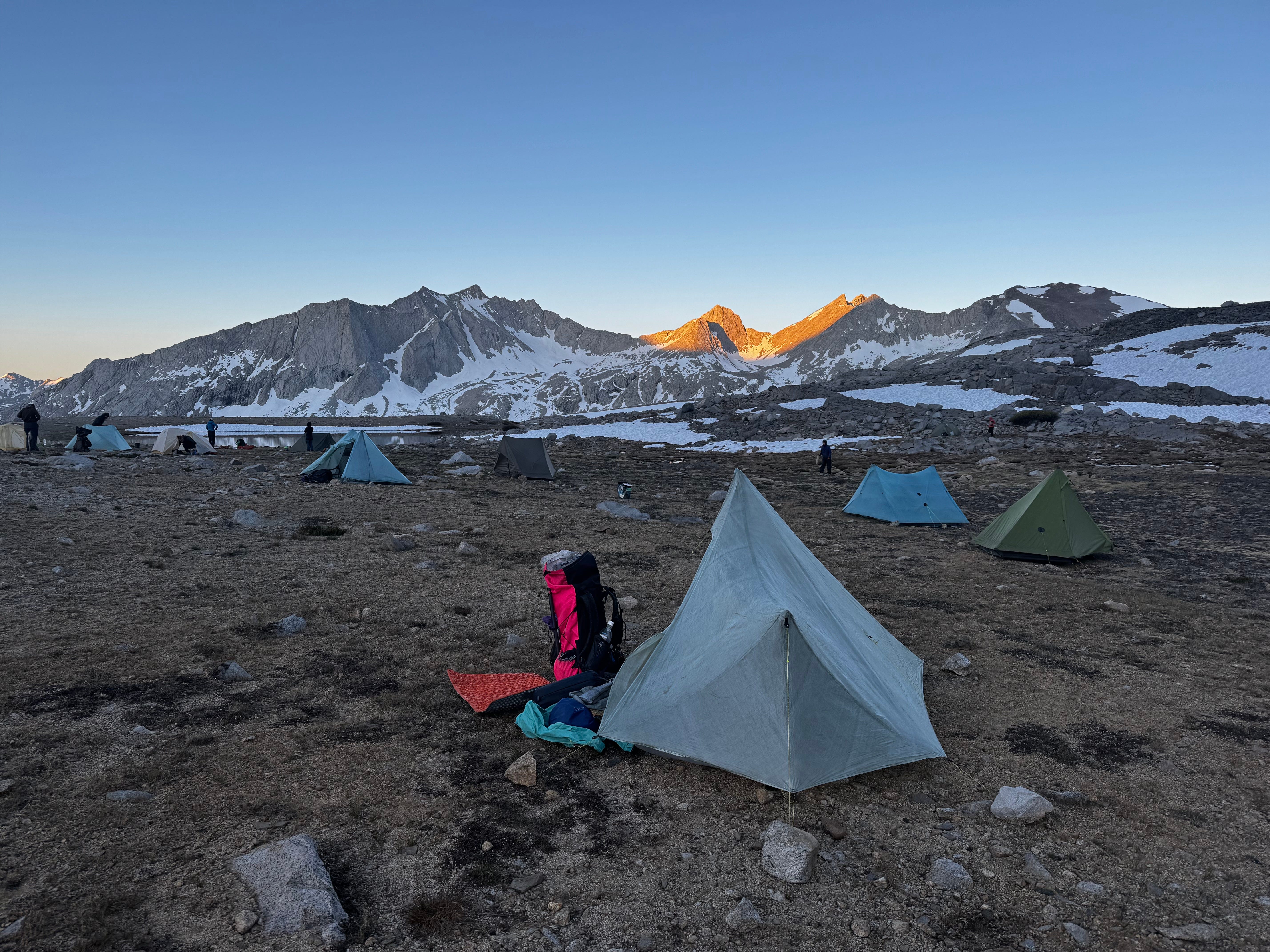 As much as I wanted to keep hiking, that morning my wet clothes and gear told me it was time to get off trail for a few days. I laid in my tent thinking about everything it would take to get me to a bed—pack up, hike to a side trail, hike down to a parking lot, hope I could find a hitch to drive me the hour down to Lone Pine, find a place to stay. Finally, lay back down.